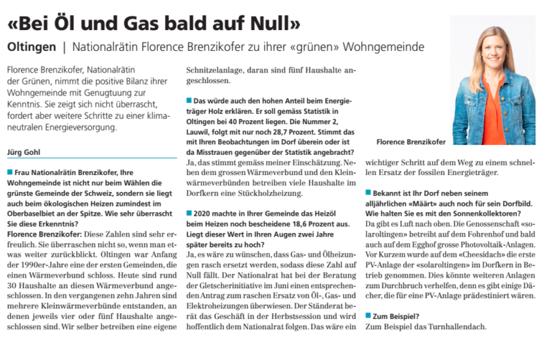 Nationalrätin Florence Brenzikofer zu ihrer «grünen» Wohngemeinde